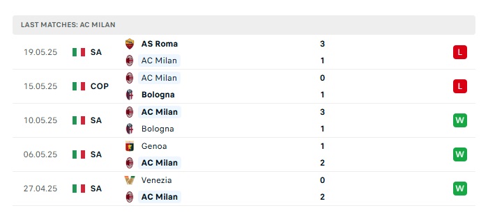 • Phong độ gần đây AC Milan