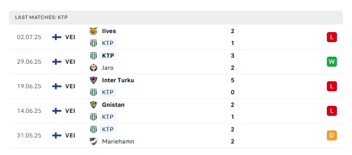 Phong độ gần đây AC Oulu  vs KTP Kotka