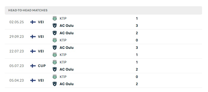 Lịch sử đối đầu AC Oulu vs KTP Kotka