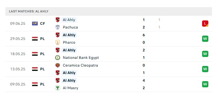 Phong độ gần đây Ahly Cairo vs Inter Miami
