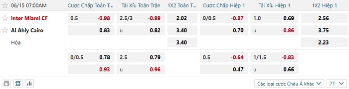 Bảng tỷ lệ kèo nhà cái Ahly Cairo vs Inter Miami