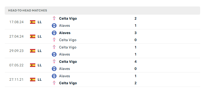 Lịch sử đối đầu Alaves vs Celta Vigo