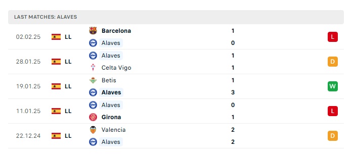 • Phong độ gần đây Alaves