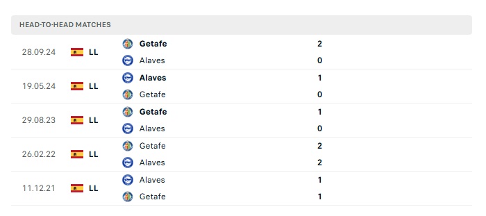 Lịch sử đối đầu Alaves vs Getafe