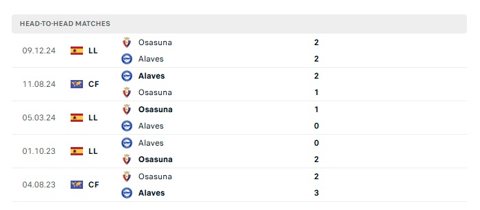 • Kèo tỷ số H2 Alaves vs Osasuna: 0-1