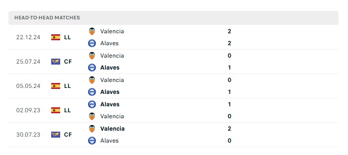• Kèo tỷ số H2 Alaves vs Valencia: 0-0