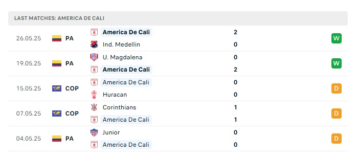 Phong độ gần đây America Cali  vs Racing Montevideo