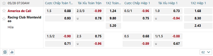 Bảng tỷ lệ kèo bóng đá America Cali vs Racing Montevideo