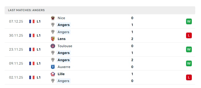 • Phong độ gần đây Angers
