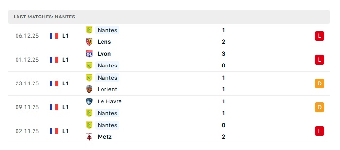 • Phong độ gần đây Nantes