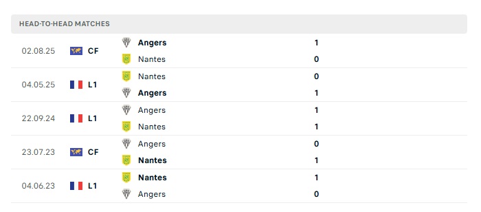 Lịch sử đối đầu Angers vs Nantes