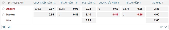 Soi kèo châu Á, kèo Angers vs Nantes