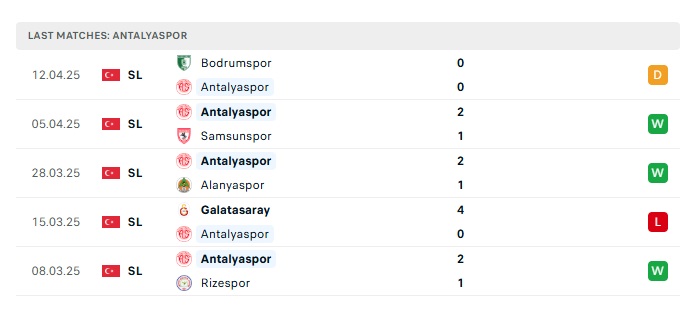 - Phong độ gần đây Antalyaspor