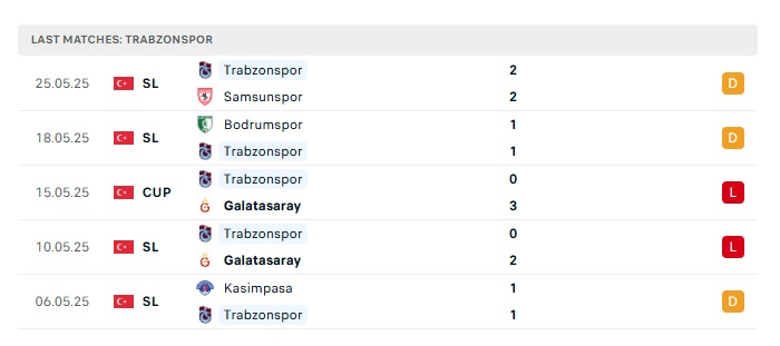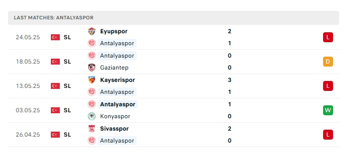 Phong độ gần đây Antalyaspor vs Trabzonspor