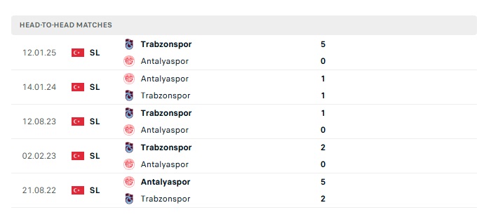 Lịch sử đối đầu Antalyaspor vs Trabzonspor