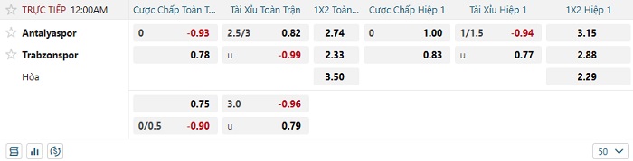 Bảng kèo bóng đá Antalyaspor vs Trabzonspor