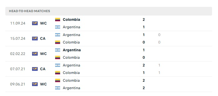 - Kèo tỷ số H2 Argentina vs Colombia: 1-0