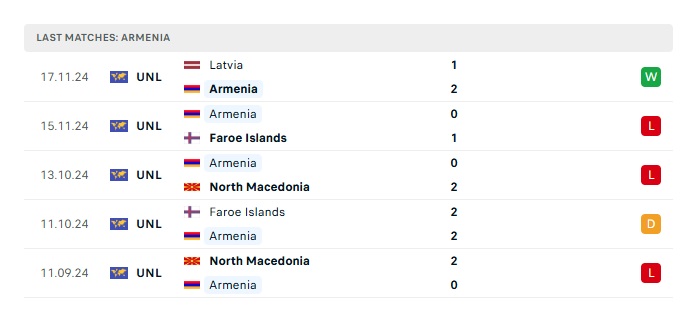 • Phong độ gần đây Armenia