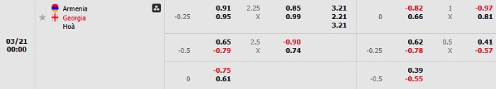 Bảng tỷ lệ kèo bóng đá Armenia vs Georgia