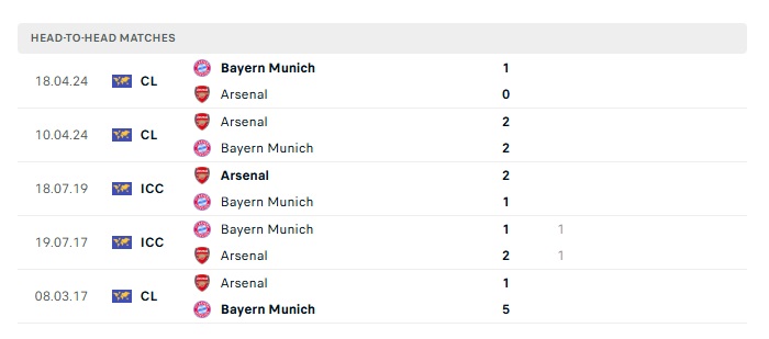 Lịch sử đối đầu Arsenal vs Bayern Munich