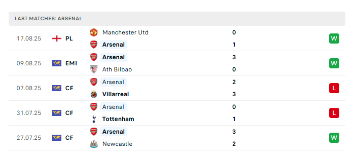 - Phong độ gần đây Arsenal