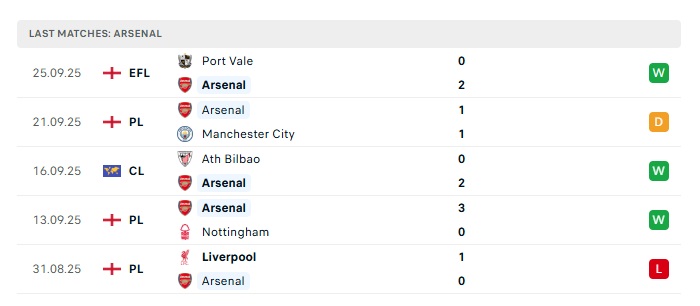 • Phong độ gần đây Arsenal