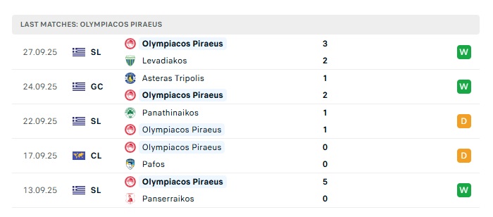 • Phong độ gần đây Olympiakos