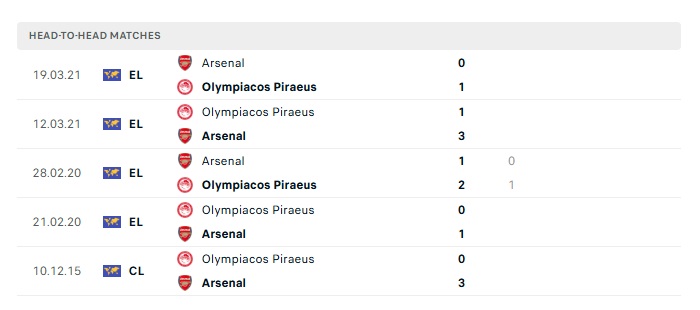 Lịch sử đối đầu Arsenal vs Olympiakos