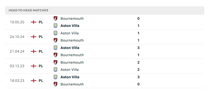 Lịch sử đối đầu Aston Villa vs Bournemouth