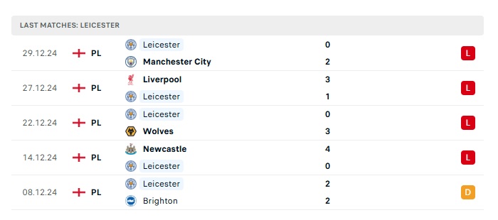 - Phong độ gần đây Leicester City