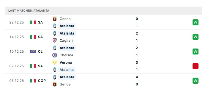 - Phong độ gần đây Atalanta