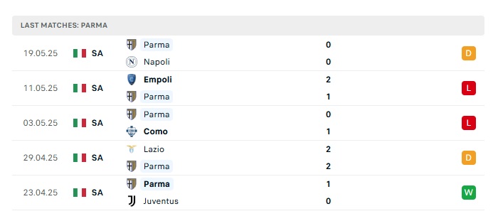 • Phong độ gần đây Parma