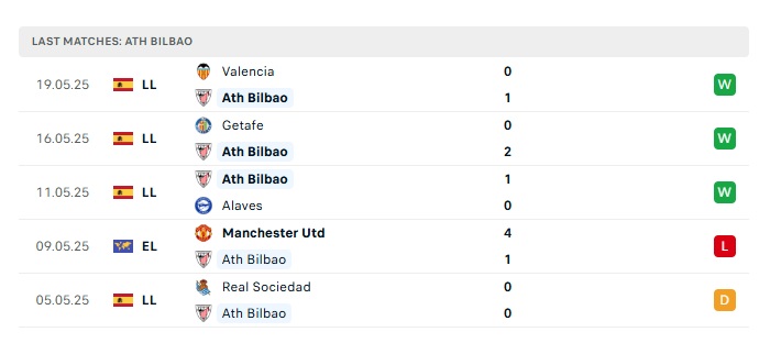 • Phong độ gần đây Athletic Bilbao