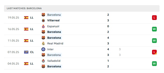 • Phong độ gần đây Barcelona