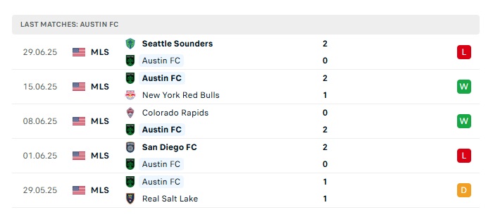 - Phong độ gần đây Austin FC