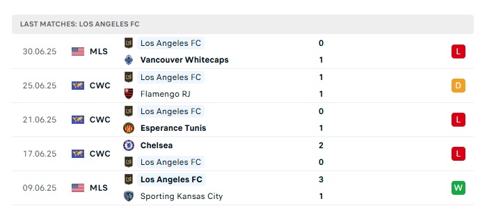 - Phong độ gần đây Los Angeles FC