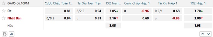 Bảng tỷ lệ kèo bóng đá Australia vs Nhật Bản