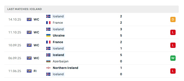 - Phong độ gần đây Iceland