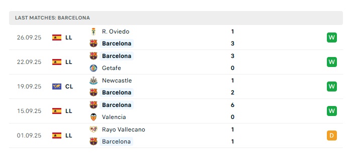 - Phong độ gần đây Barcelona