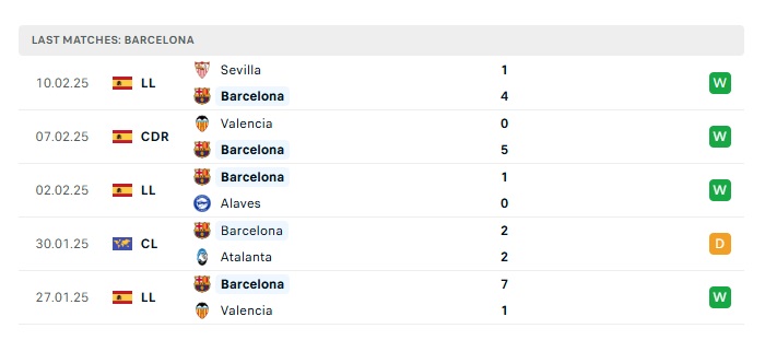 Phong độ gần đây Barcelona vs Rayo Vallecano
