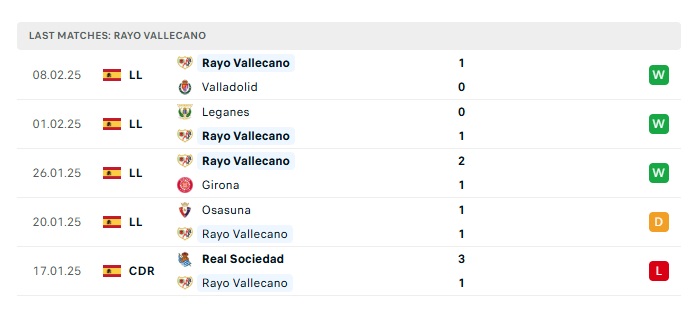 - Phong độ gần đây Rayo Vallecano