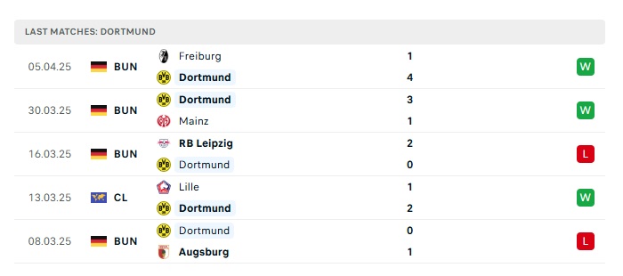 - Phong độ gần đây Dortmund