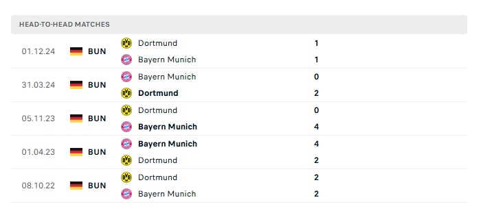 Phong độ gần đây Bayern Munich vs Dortmund