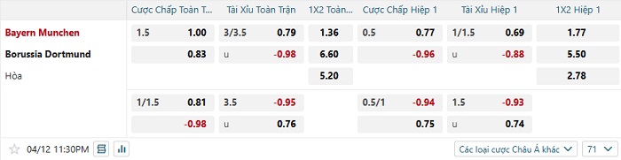 Bảng kèo nhà cái Bayern Munich vs Dortmund
