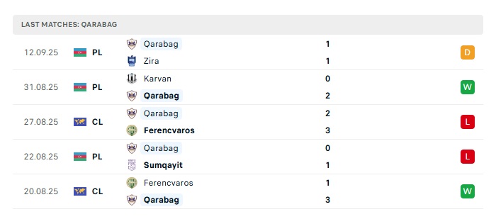 • Phong độ gần đây Karabakh Agdam