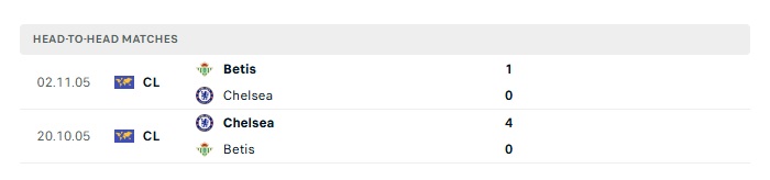 Lịch sử đối đầu Betis vs Chelsea