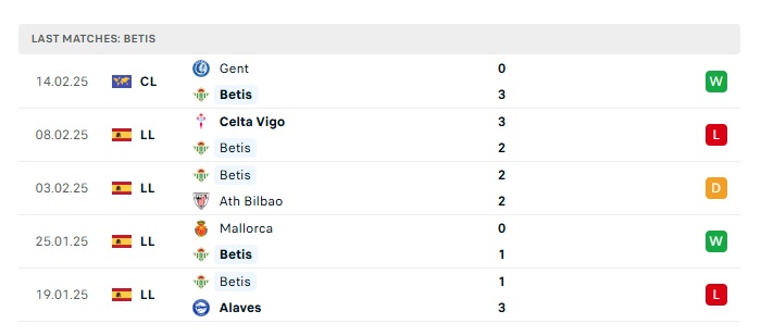 • Phong độ gần đây Betis
