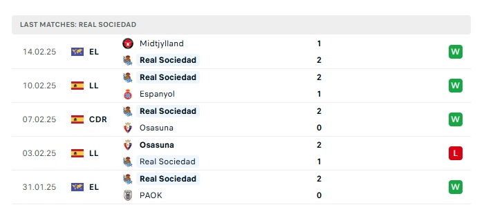 • Phong độ gần đây  Real Sociedad