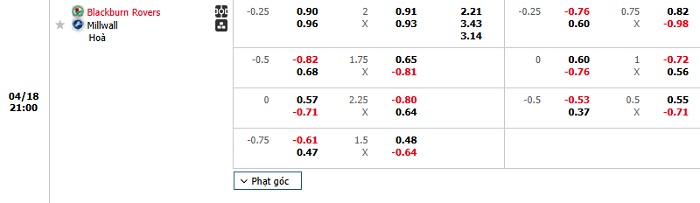 Đang có phong độ cao nhưng có thể nói việc giành chiến thắng rất khó với Millwall khi mà họ phải thi đấu tại sân khách. Trong lần gần nhất gặp nhau, Millwall cũng đã có cho mình 1 chiến thắng tối thiểu như tại sân nhà. Ngoài ra thì 5 trận sân nhà gần nhất, Blackburn cũng đã có 2 hòa, 1 thắng và chỉ thua 2. Do đó, Hòa sẽ trở thành lựa chọn an toàn nhất ở kèo châu Âu trận đấu hôm nay.