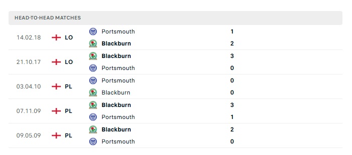 Lịch sử đối đầu Blackburn Rovers vs Portsmouth